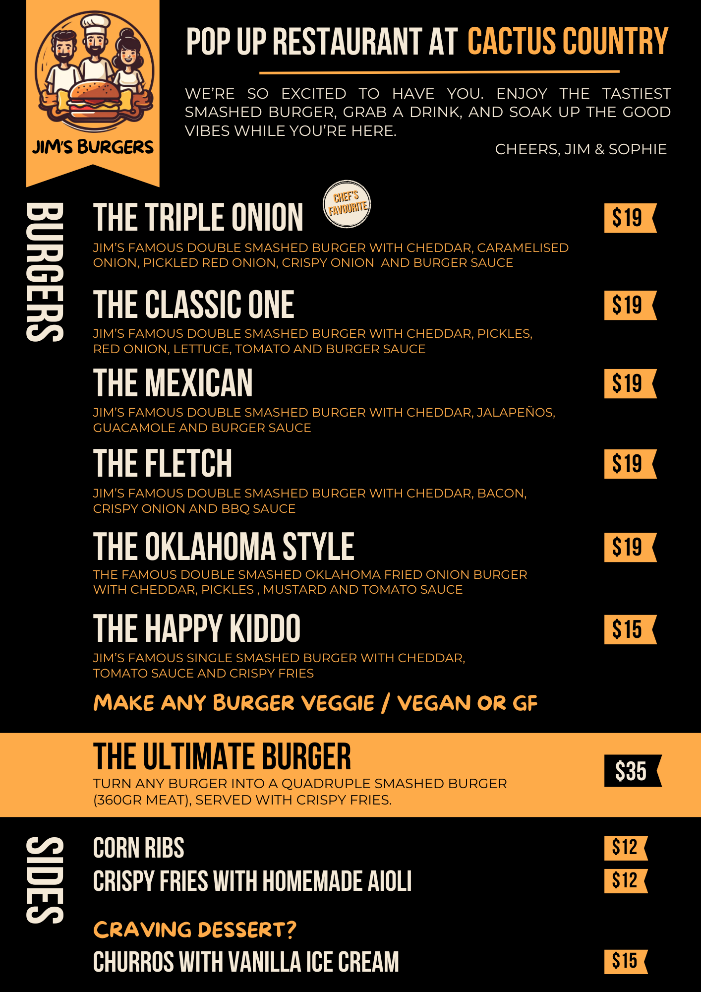 This special pop up was created by Jim, a passionate burger chef from Sweden who loves making the perfect smashed burgers!